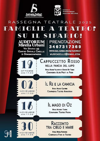 Anche quest’anno, la Scuola di Musica e Teatro Antonio Salieri con il patrocinio del Comune di Sommacampagna, presenta la rassegna teatrale per famiglie con quattro appuntamenti da non perdere!